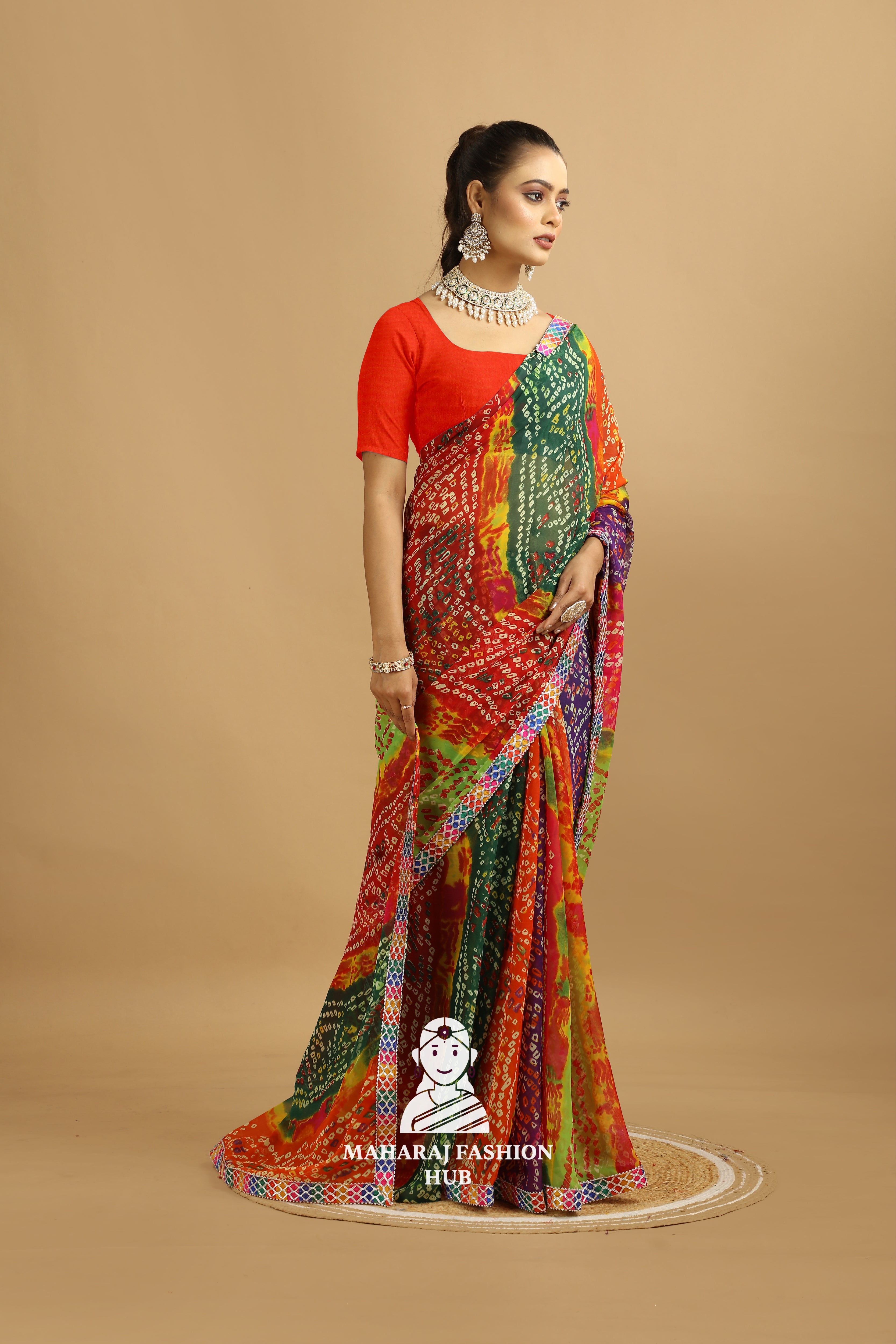 Step into elegance and tradition with this exquisite Georgette Printed Saree from Maharaj Fashion Hub, crafted to celebrate the beauty and grace of Indian womanhood. Designed for traditional occasions like weddings, festivals, and religious ceremonies, this saree effortlessly blends cultural richness with modern sophistication.