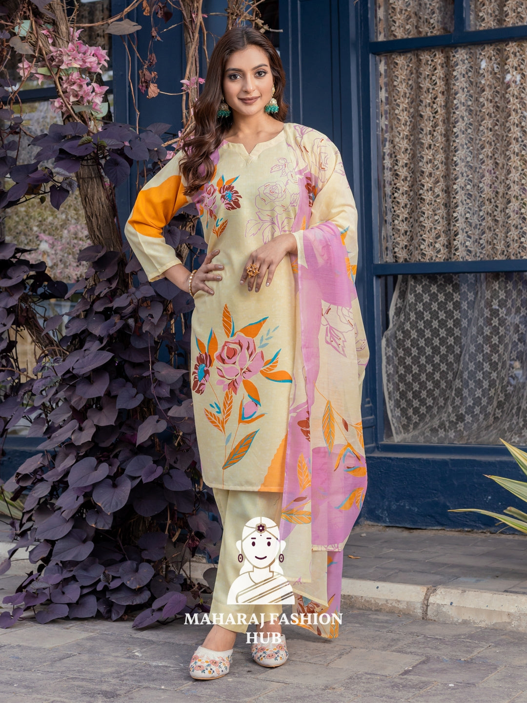 Elevate your ethnic wardrobe with the timeless elegance of Maharaj Fashion Hub’s, a fully stitched Kurti Pant Dupatta set crafted to blend tradition with refined luxury.