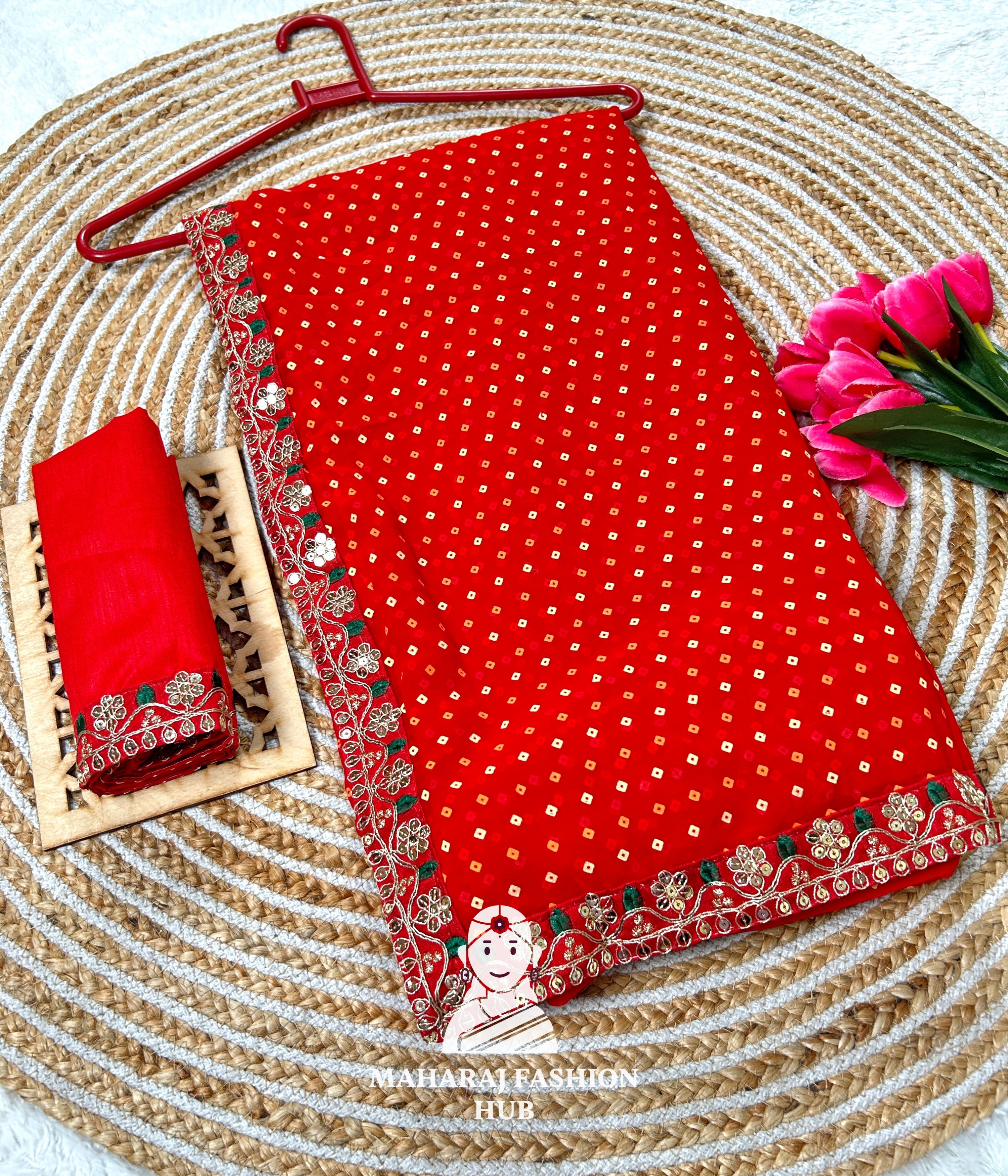 This traditional Rajasthani Bandhej Chundri Saree is crafted using authentic tie-dye techniques. Lightweight, colorful, and rich in heritage — perfect for Navratri, weddings, or festive occasions. Comes with a matching blouse piece.