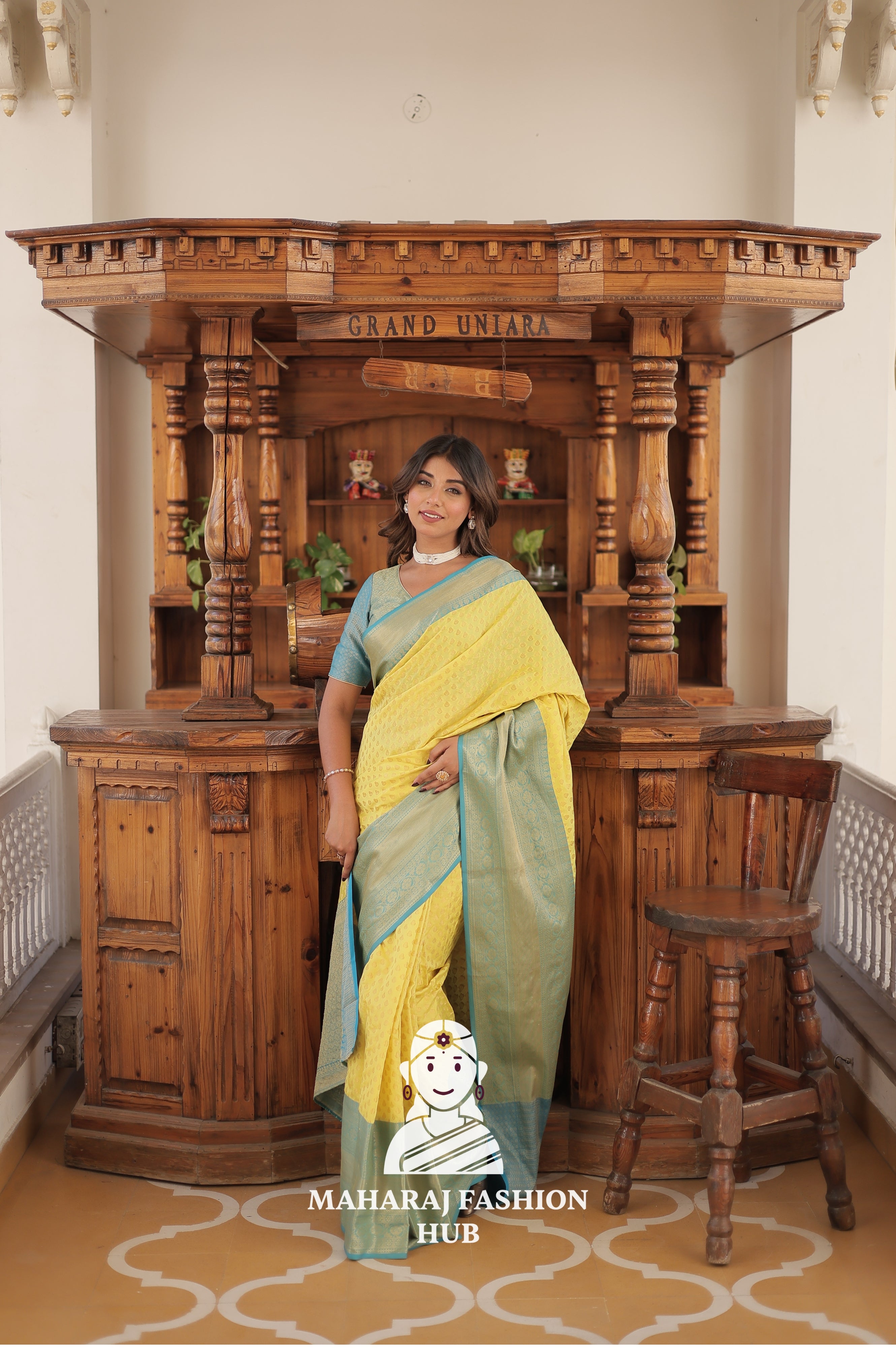 Experience timeless elegance with our Premium Designer Saree, crafted from luxurious Kanjivaram silk and adorned with intricate zari weaving. A perfect blend of tradition and sophistication, ideal for festive and special occasions.